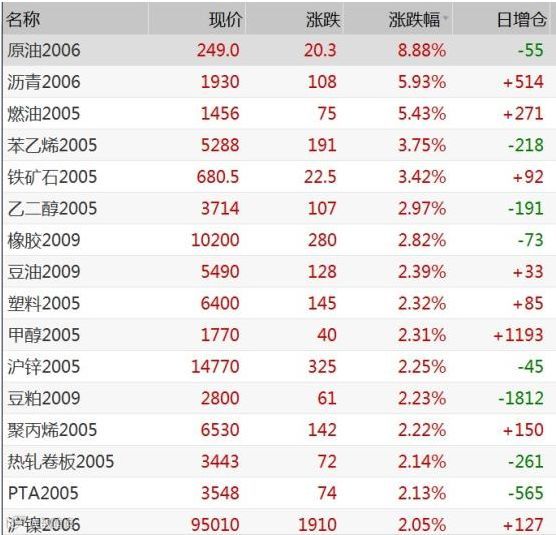 3月20日,国内期市开盘几近全线飘红,原油涨近9%,沥青涨近6%,燃油涨超5%。黑色系多数上涨,铁矿石涨逾3%,热卷涨逾2%,螺纹钢涨逾1%;基本金属多数上涨,沪锌、沪镍涨逾2%,沪铅涨逾1%;贵金属均上涨,沪银涨逾1%;农产品多数上涨,豆油、豆粕涨逾2%,菜油涨逾1%。