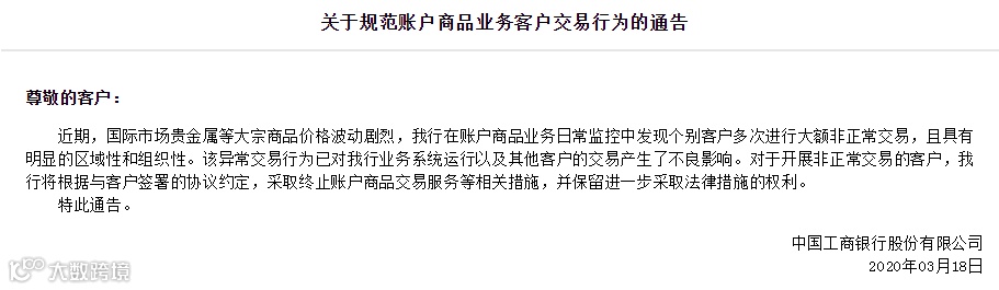其一,是宣布将灵活调整账户商品的交易点差;其二,则指出个别客户存在具有明显的区域性和组织性的大额非正常交易,该行将予以限制。