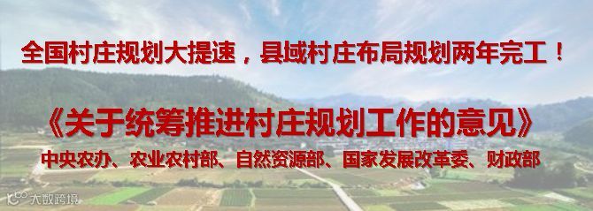 为推动各地加强村庄规划工作领导,科学有序引导村庄规划建设,促进乡村振兴,近日,中央农办、农业农村部、自然资源部、国家发展改革委、财政部制定了《关于统筹推进村庄规划工作的意见》,力争到2019年底,基本明确集聚提升类、城郊融合类、特色保护类等村庄分类;到2020年底,结合国土空间规划编制在县域层面基本完成村庄布局工作,有条件的村可结合实际单独编制村庄规划,做到应编尽编。