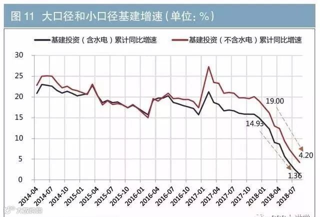 2018年初至今,基建投资增速出现了前所未有的崩塌式下滑。截至9月,基建投资名义增速(含水电)已降至1.36%(见图11),2017年全年是14.9%。考虑价格因素后,实际增速已经为负。这是地方政府的预算约束重新被关进笼子带来的短期阵痛,但同时也意味着中国的基建增速将告别2009年以来两位数的增长,未来将进入个位数增长的新常态。