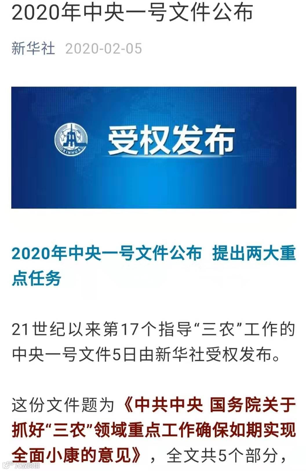 文件明确2020年两大重点任务是集中力量完成打赢脱贫攻坚战和补上全面小康“三农”领域突出短板,并提出一系列含金量高、操作性强的政策举措。