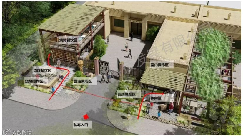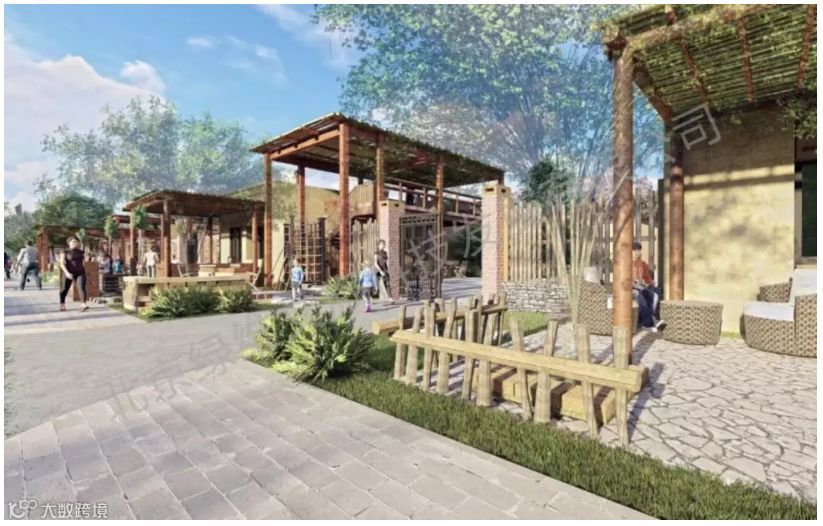 景观上,仿木质的小矮桩、竹编的雨棚以及自然的大石块,体现出更加原生态的原乡意境。