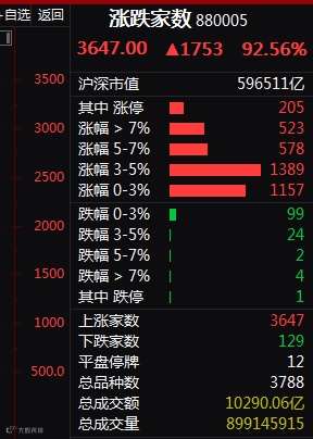 从赚钱效应来看,两市赚钱效应也非常突出。涨停个股高达205只,上涨家数高达3647只,下跌的家数仅为129只。这一数据跟上一个交易日恰好相反。