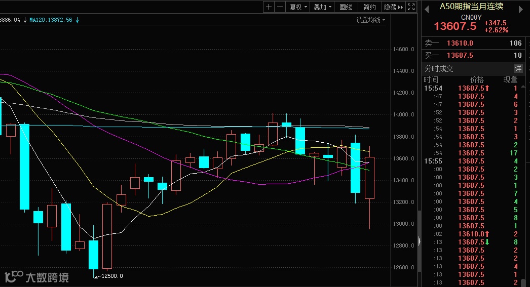 与此同时,在美股持续暴跌的背景之下,A50的走势亦相对强势,今日一度反弹近3%。