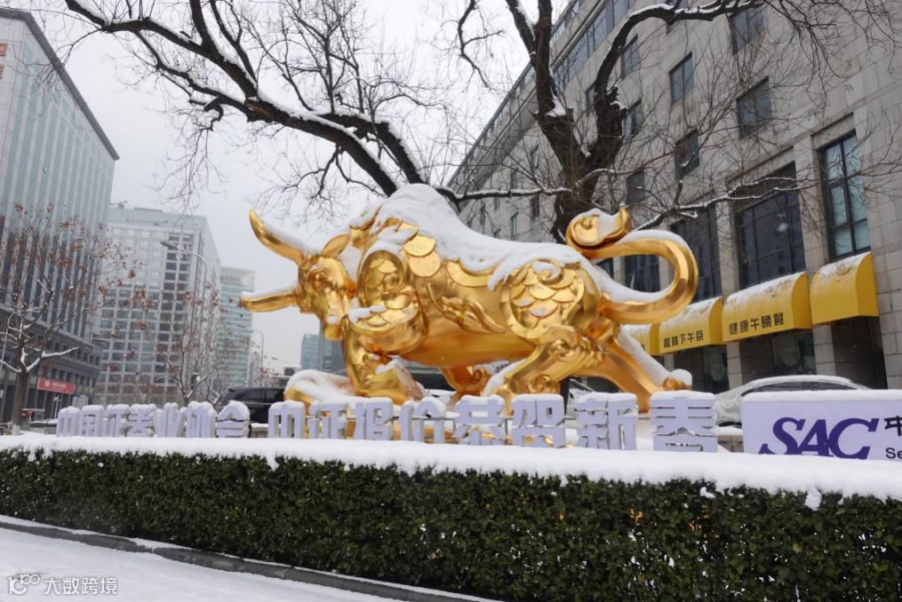 金融街上最亮眼的牛还在吗?当然在。金融街购物中心的那只金牛,仍然站在白雪皑皑里,低首撅尾,覆盖着白雪,等着牛气冲天。但是,金融购物中心里,一个偌大的购物商城,只剩下外卖小哥进进出出。
