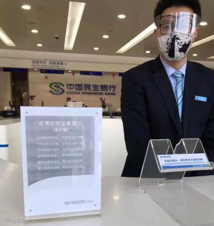 民生银行北京分行:网点厅堂工作人员在营业过程中全程佩戴口罩,有条件的同时佩戴了护目镜。