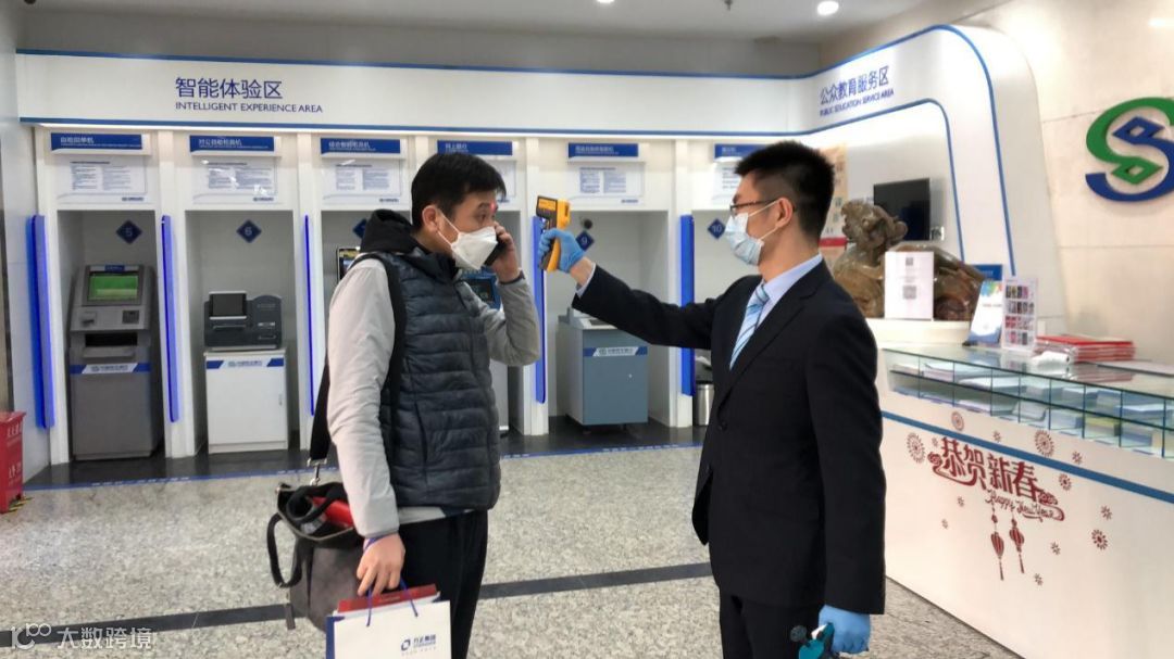 民生银行北京分行:厅堂服务人员为进入网点的每位客户进行体温测量,确保厅堂环境安全。