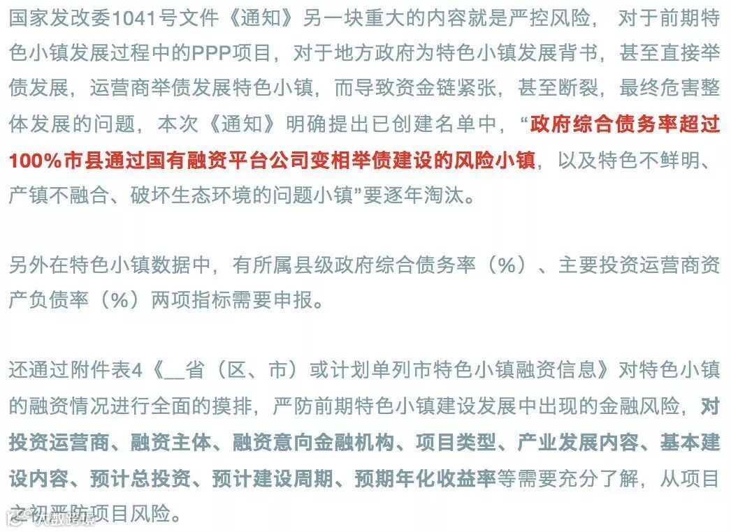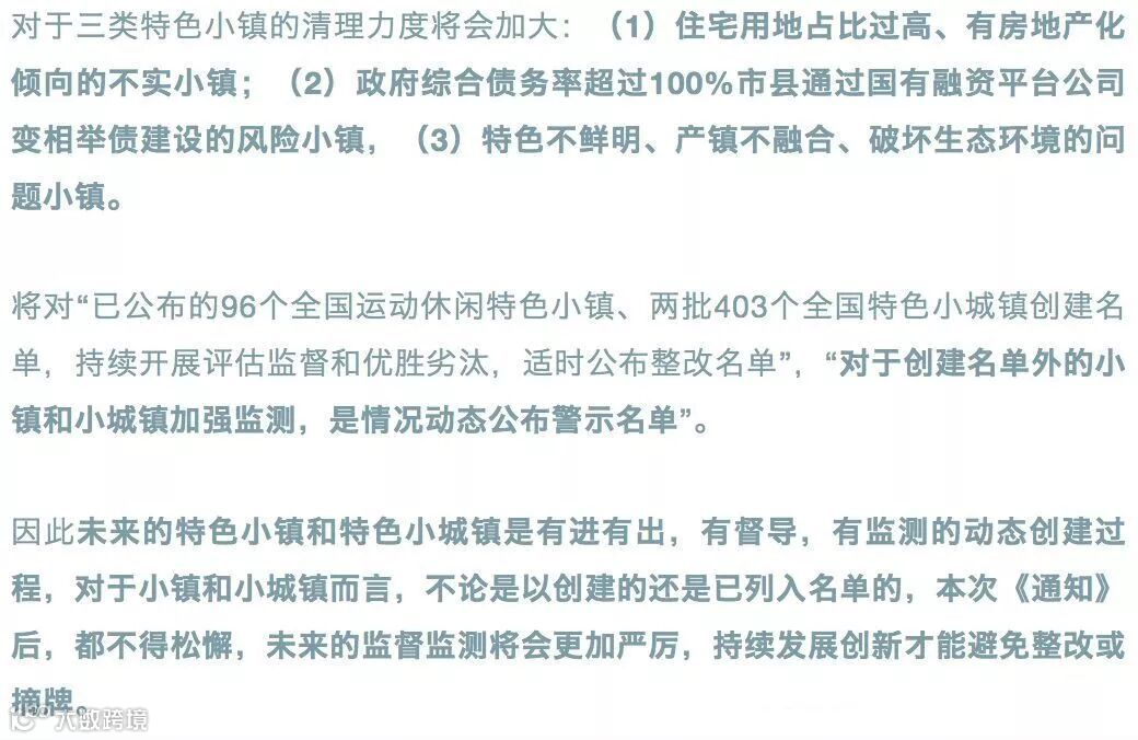 本次国家发改委1401号文件《通知》的一个重要基调就是“纠偏”,对于前期“概念不清、盲目发展及房地产化苗头”进行纠错,要“严格遵循发展规律、严控房地产化倾向、严防政府债务风险为底线”,“建立规范纠偏机制”。要“坚持规范发展”,“规范特色小镇和特色小城镇创建工作,把握内涵、纠正偏差、正本清源,坚决淘汰一批确实产业前景、走形变样异化的小镇和小城镇。”