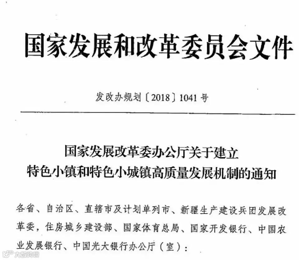 2018年8月30日,国家发展和改革委员会文件《国家发展改革委办公室关于建立特色小镇和特色小城镇高质量发展机制的通知》(发改办规划〔2018〕1041号),下文简称《通知》。这标志着自2017年12月国家发展改革委、国土资源部、环境保护部和住房城乡建设部联合印发了《关于规范推进特色小镇和特色小城镇建设的若干意见》(发改规划〔2017〕2084号,以下简称《意见》)发布以来,给特色小镇热潮的及时刹车及清理整顿已经取得阶段性进展,新的一轮特色小镇和特色小城镇的探索工作开始展开,预计以文件下达到各地响应,至2018年9月,省一级发展改革委将第一批特色小镇推荐案例(2个以内)报送国家发改委,预计2018年底完成申报工作,2019年1月,完成最终的审核工作。因此,2018年的新的特色小镇申报已经开启了。