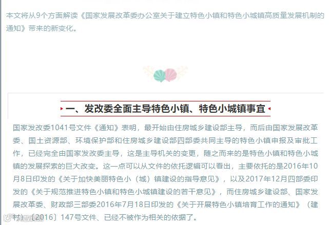 更重要的是本次国家发改委1401号文件《通知》中明确了特色小镇创建的长效机制,以往的特色小镇创建中,省住建厅将推荐名单上报住房城乡建设部,然后由住房城乡建设部统一对上报的特色小镇组织答辩,进行审核、评估,最终确定全国特色小镇名单。