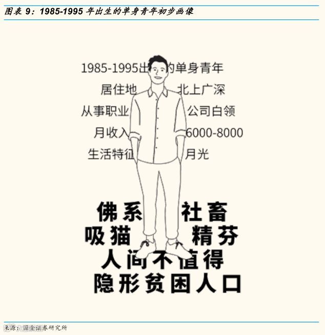 比如说在2019年情人节前两天,国金证券发布了一篇题为《单身经济崛起,消费新势力抬头》的研报,将1985-1995年出生的“未婚人群”定义为研究对象,并认为年轻的单身群体是未来中国消费趋势变化的重要风向标。