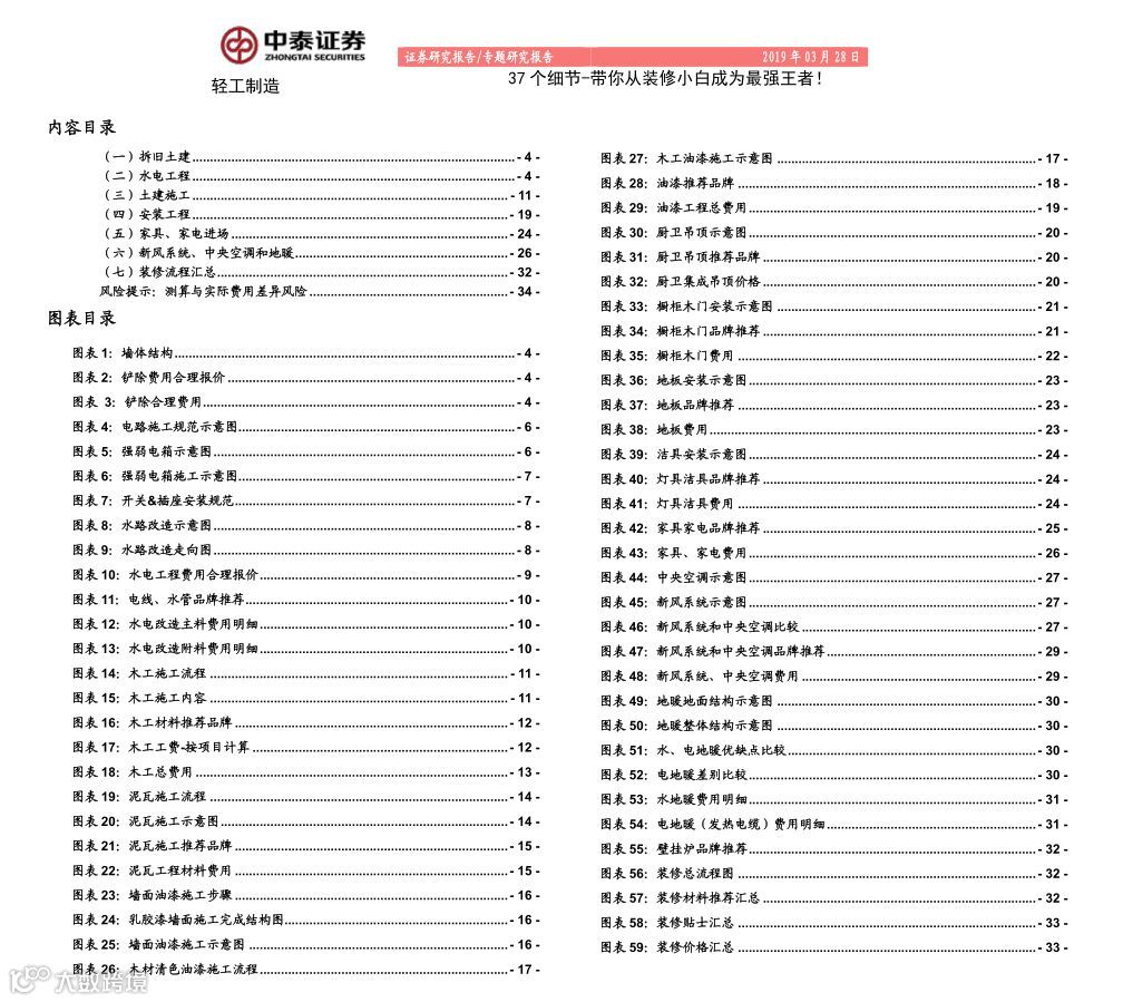 中泰证券发布的《轻工制造专题研究报告:37个细节-带你从装修小白成为最强王者!》能从头到尾帮你指点迷津,装修费用一清二楚。