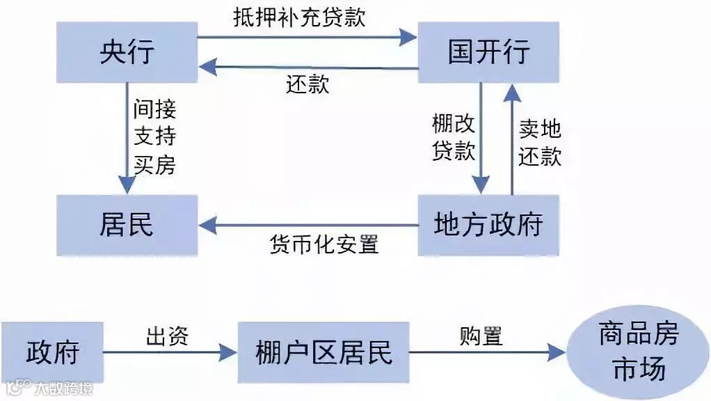 通常来说,棚改资金来自央行、地方公共财政收入和中央专项资金,而来自央行的资金占比最大。资金流向为央行通过PSL向国开行发放贷款,国开行通过棚改专项贷款向地方政府发放贷款,地方政府通过货币化安置向棚户区居民发放补偿款,地方政府拆迁卖地后偿还国开行贷款,国开行偿还央行贷款,形成资金流的闭环。