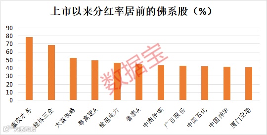 将时间范围拉长看,重庆水务、桂林三金、大秦铁路上市以来分红率均超50%,分别为78.52%、68.37%和52.87%;粤高速A、桂冠电力、鲁泰A等8股上市以来分红率均在40%以上。也就是说,上述11家公司将上市以来净利润的40%以上用来回报投资者。