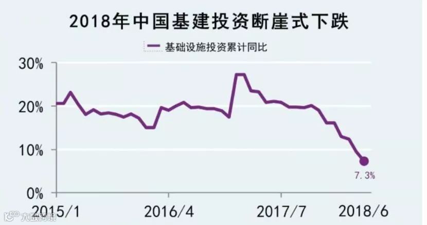 基建投资作为固定资产投资的三大支柱之一,对于投资和经济增长的拉动作用不容忽视。但是,今年年初以来,基建投资增速持续下滑,上半年基建投资增速为7.3%,远低于去年同期的21.1%,引起市场各界对于经济下行压力的担忧。