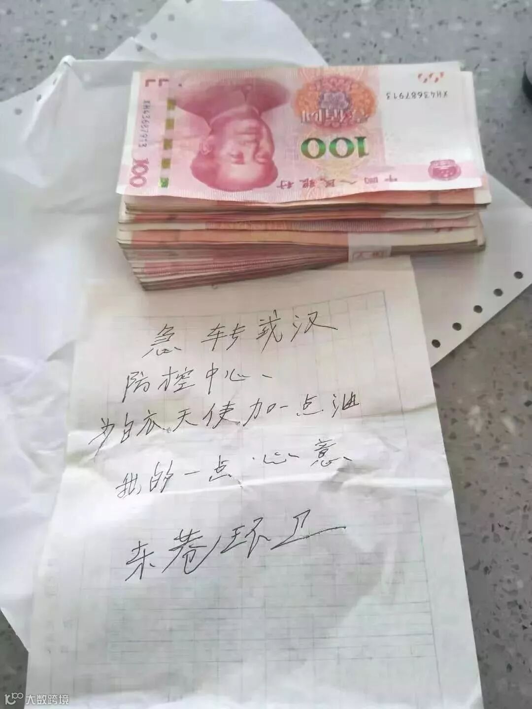 发现里面是1万2千元钱和一张纸条