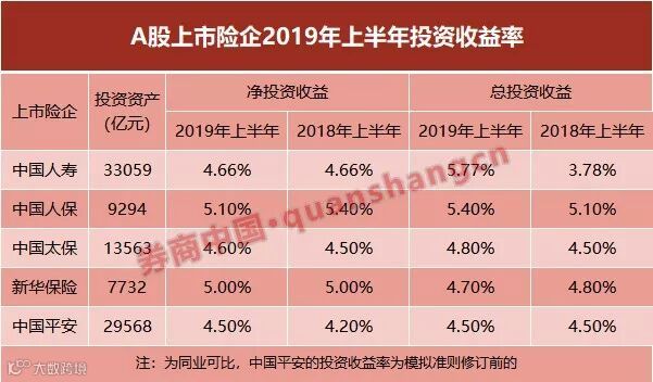 2019年上半年,人保集团总投资收益239.48亿元,同比增长11.3%;净投资收益225.01亿元,同比下降0.7%;年化总投资收益率为5.4%,同比上升0.3个百分点;年化净投资收益率为5.1%,同比下降0.3个百分点。