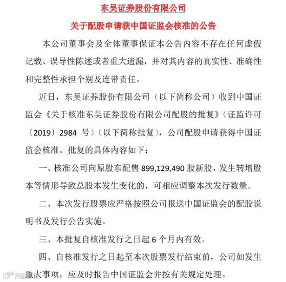 就在同一时间,东吴证券的65亿配股计划也获得了证监会的核准,而此时距离东吴证券在2017年8月首次提出配股计划,已经过去了两年半时间,期间还经历了一次终止重来。