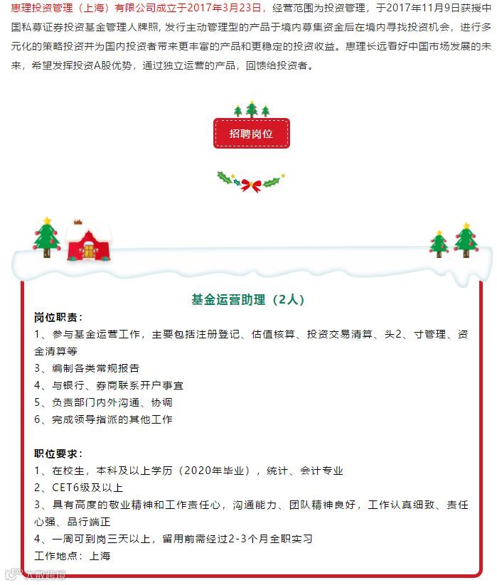 尽管2019已经到了最后几天,但惠理似乎仍有岗位空缺。近日,惠理针对基金运营助理一职再次发出招聘启事,可见公司目前人手依然处于较为短缺的状态。