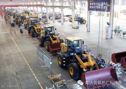 正在生产线上加紧生产的雷沃装载机
