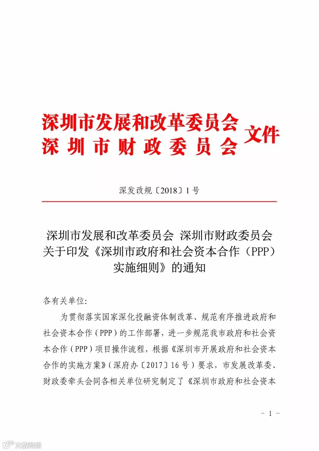 《深圳市政府和社会资本合作(PPP) 实施细则(试行)》正式发布!