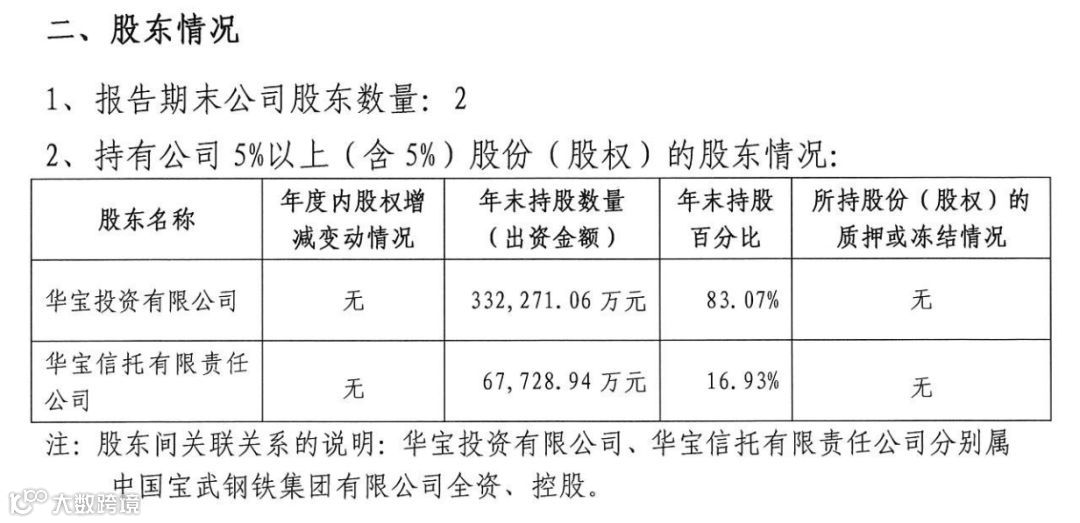而华宝投资有限公司和华宝信托有限责任公司分别属中国宝武钢铁集团有限公司全资、控股。