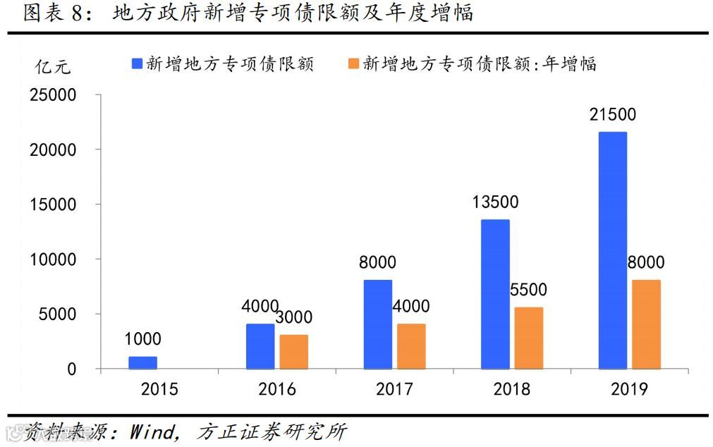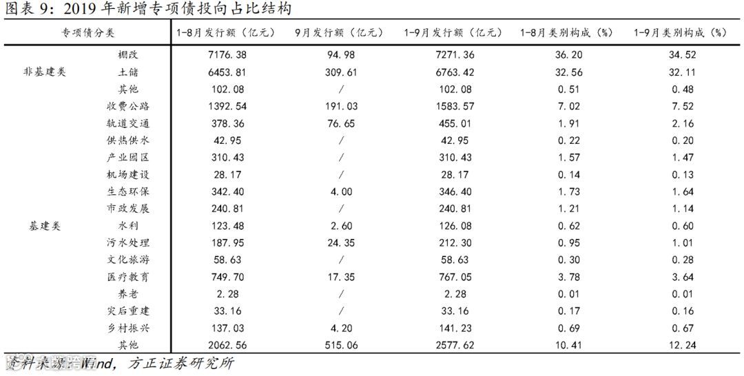 8、 专项债将拉动基建投资增速5个百分点左右