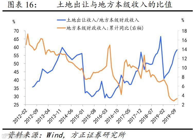 2020年土地出让收入与地方本级收入的比重仍有望在高位运行。地方政府土地出让收入近年来持续达到地方本级财政收入(不含转移支付和税收返还)的40%以上,今年前10个月已经接近60%。