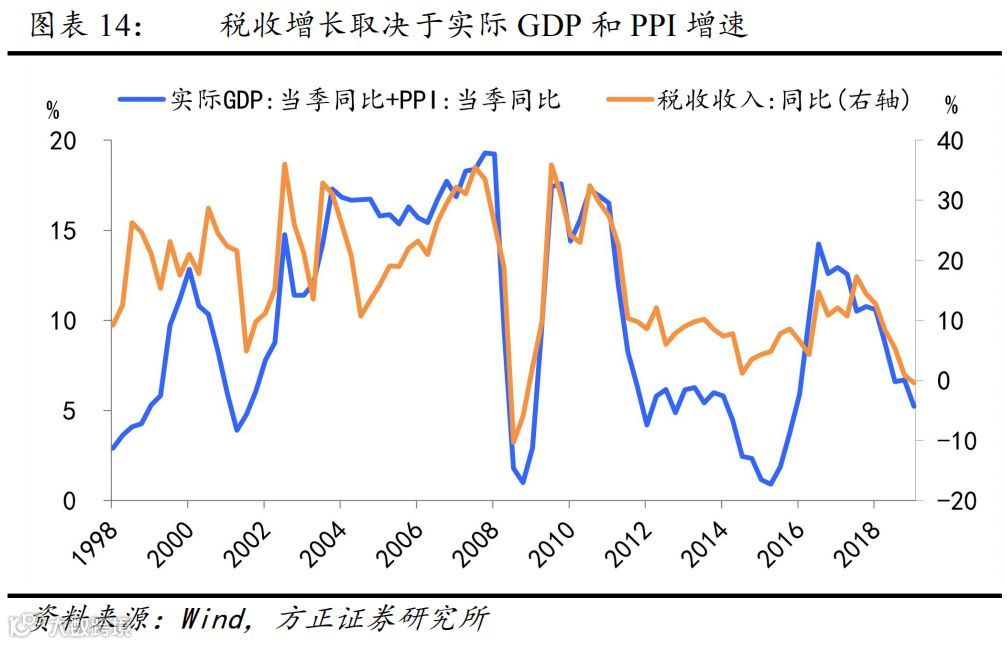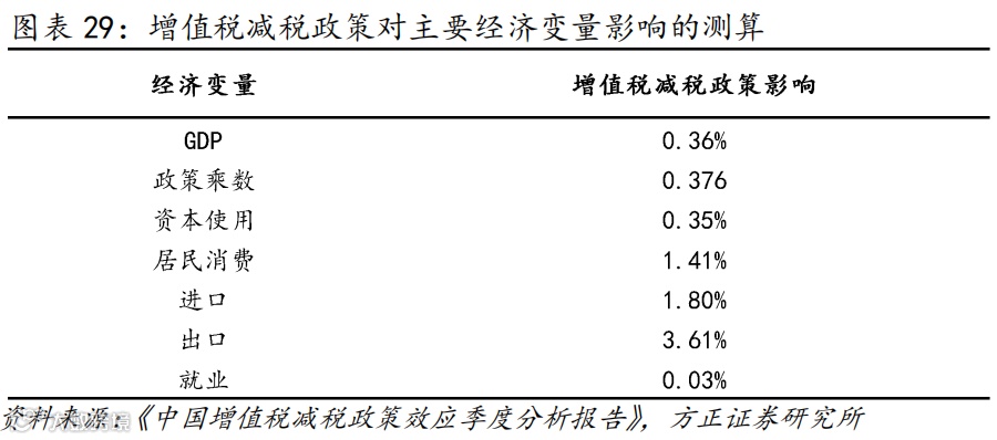 2019年财政稳增长着力于“收入端”。2019年大规模减税降费是积极财政的主要体现,并对经济稳增长产生作用(图表29),但也由于其对地方财政收支带来的巨大压力,而使得继续实施大规模减税降费的持续性较弱。