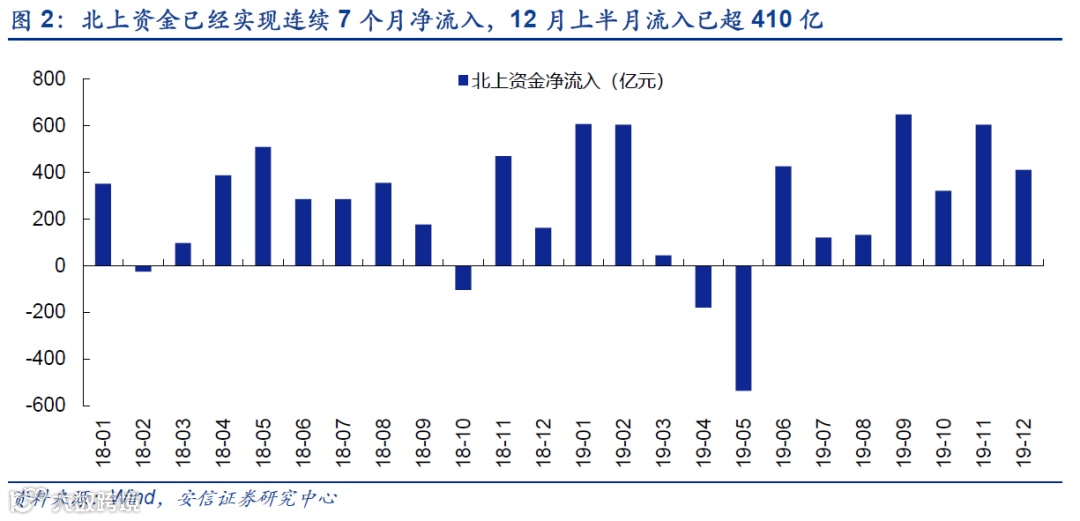 中美经贸等关系的不确定性以及人民币汇率对外资也是重要的影响因素。我们认为12月推动外资持续流入A股的一个重要因素在于外资预期中美第一阶段协议能够在12月15日前达成,预期人民币汇率将维持稳定乃至有所回升。