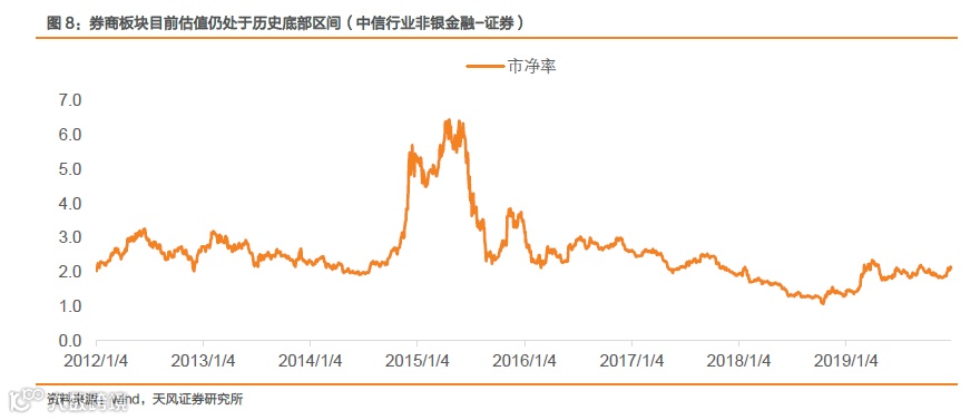 此外,就估值来看,目前证券板块估值仍低于历史中位数。