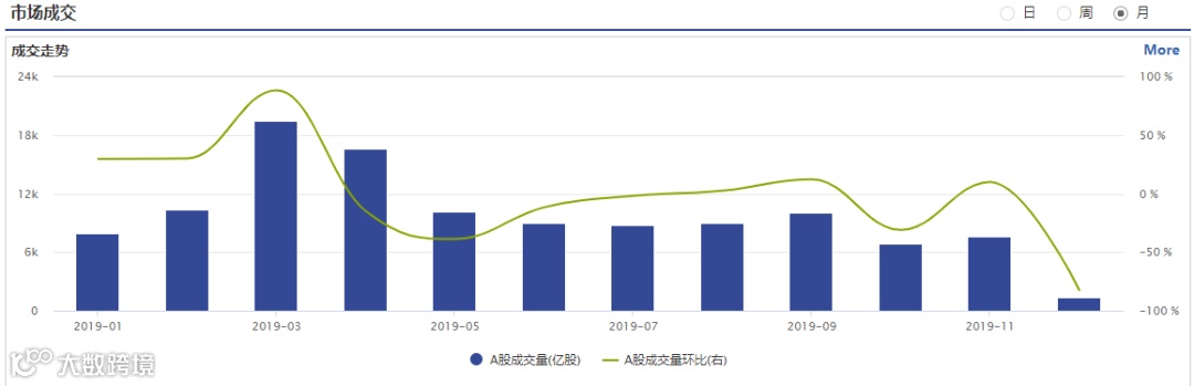 时至12月初,这份研报观点可算是一语成谶。在10月份因交易日的数量导致A股交易金额出现低谷后,11月份整体市场环境略有好转,但仍未出现期盼中的“大牛”行情。Wind数据显示,11月份A股市场成交数量为7582.07亿股,环比增长9.82%;成交额为8.49万亿元,环比增长11.01%。但与3月份年后“开门红”的1.95亿股、18.58万亿元无法相比。