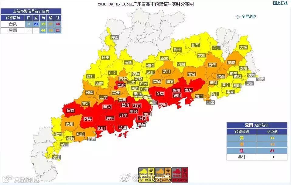 目前,中山暴雨红色预警信号