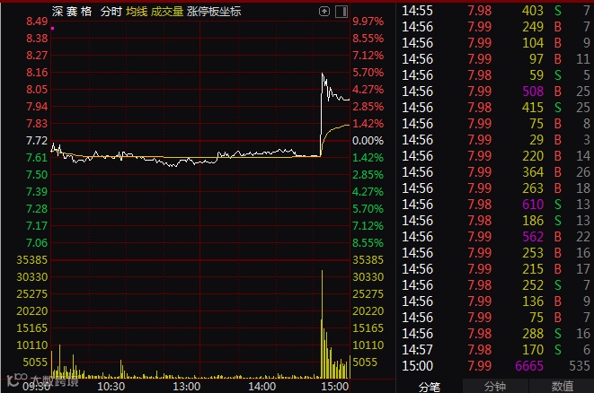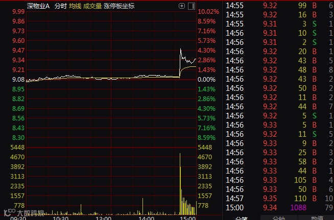 深物业A在短短几分钟内急升超过4个百分点,成交量较明显放大。
