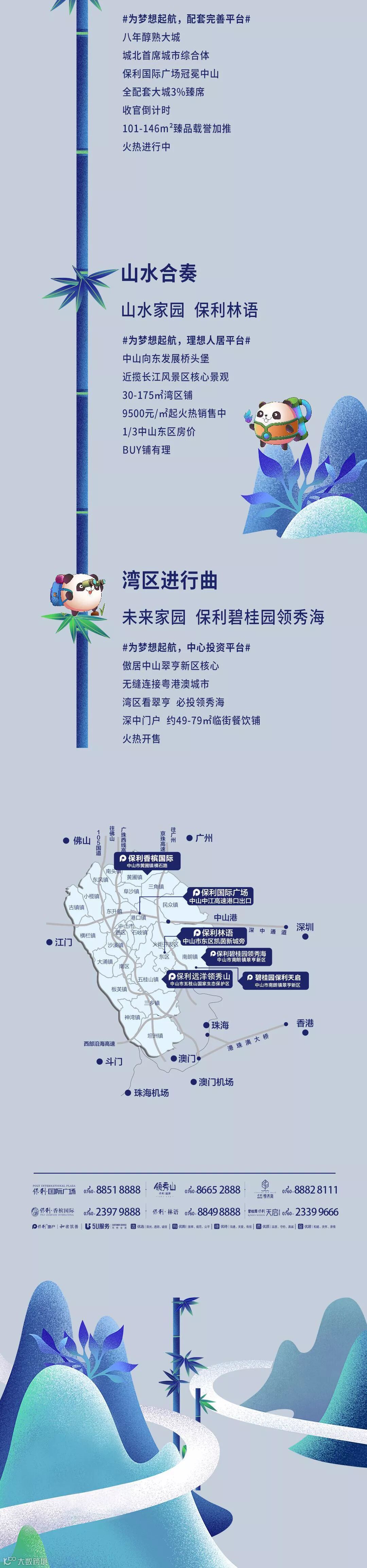 保利地产,隶属中国保利集团的大型房地产上市公司,成立于1992年,以中国高端精品住宅开发为主,世界500强企业,中国地产长城。 以国匠风华,厚载26年筑城经验,深耕中山8载,先后开发保利林语、保利国际广场、保利香槟国际、保利碧桂园领秀海、保利远洋领秀山、碧桂园保利天启6个标杆项目,造城实力以及品牌影响力有目共睹。