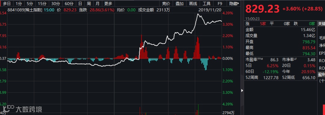 盘面上,稀土、农业等对冲贸易负面冲击的板块表现相对强势。其中,稀土指数大涨3.6%。