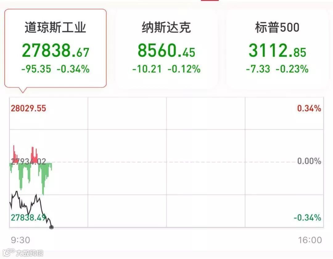 美股市场,盘前期指全线杀跌,开盘亦全线低开,截至券商中国发稿,道指下跌0.34%,标普下跌0.23%,纳指下跌0.12%。