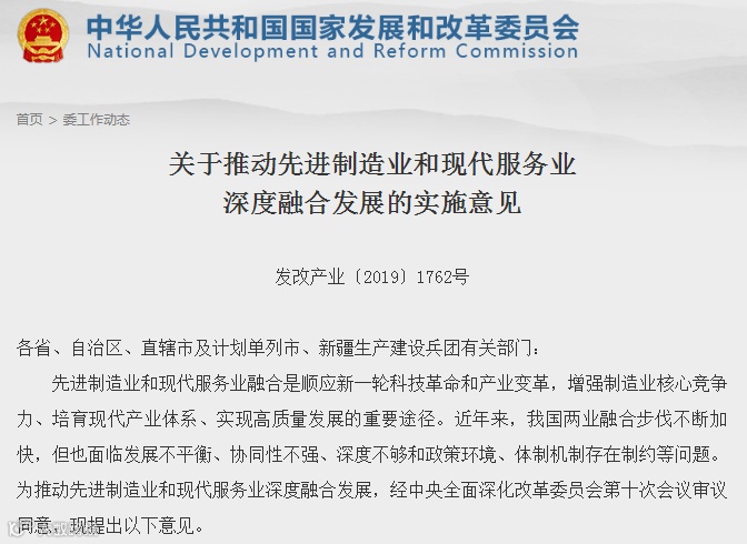 国家发改委政策研究室副主任、新闻发言人孟玮表示,推动先进制造业和现代服务业深度融合发展,是顺应新一轮科技革命和产业变革的必然趋势,也是增强制造业核心竞争力、培育现代产业体系、实现高质量发展的重要渠道。
