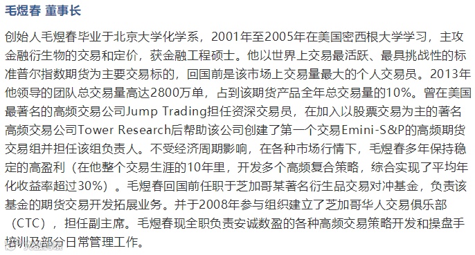 值得注意的是,在去年该案爆发之后,有报道指出Bruce Mao的个人简介与浙江安诚数盈投资官网上提供的创始人履历基本符合。根据公司介绍,安诚数盈是2015年3月成立的一家量化对冲基金。但是对于这一情况,并没有联系到公司回应。