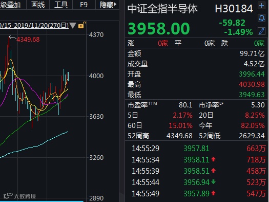 根据wind数据显示,今年业绩排名前10的A股基金经理基本都重仓了半导体股票,以2019年基金业绩冠军广发双擎升级基金为例,该基金截至11月20日的收益率高达105%,其披露的第三季度末报告显示,前十大重仓股中,竟有六只股票从事半导体业务。