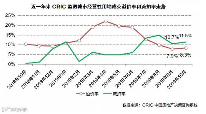 今年下半年以来土地市场的降温趋势,在克而瑞研究中心根据监测数据制出的图表中(见下图)更加直观。