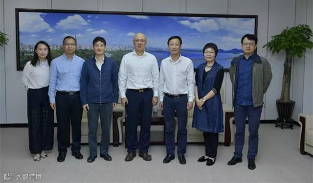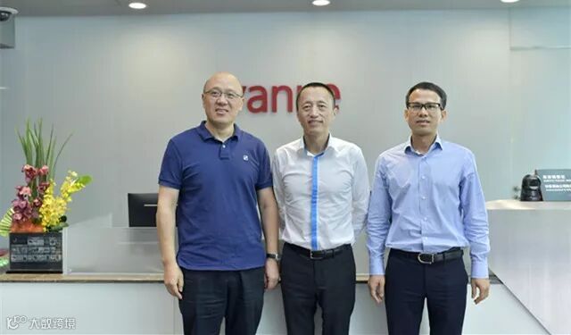 图5:何伟带领证券时报采访团与恒生电子联合创始人、总经理刘曙峰合影。