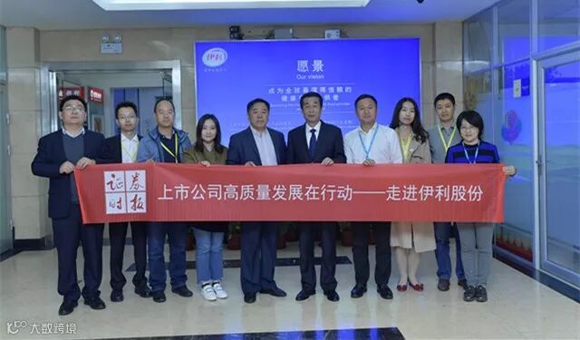 图1:证券时报社副总编辑王冰洋(左五)带采访团走进内蒙古伊利实业集团股份有限公司。