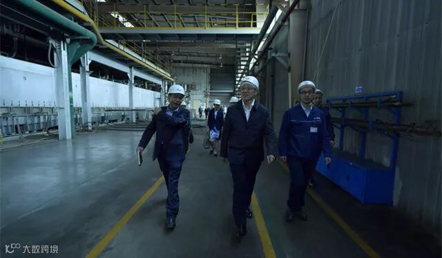 图5:何伟在福耀玻璃财务总监陈向明等相关人员的带领下参观生产车间以及展厅。