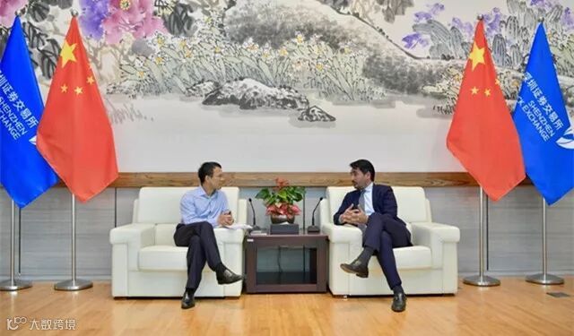 图3:证券时报社常务副总编辑周一(左)对话富时罗素首席执行官Waqas Samad(右)。