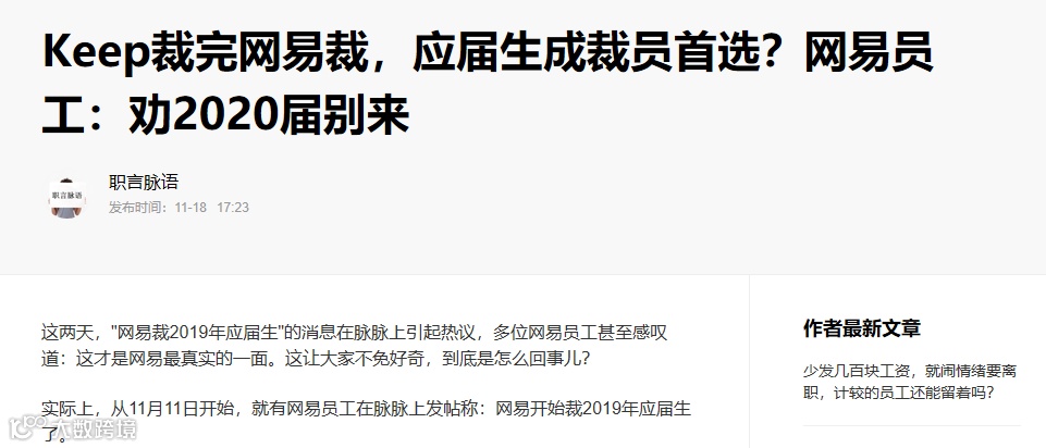 此前,"网易裁2019年应届生"的消息曾在脉脉上引起热议,多位网易员工甚至感叹道:这才是网易最真实的一面。