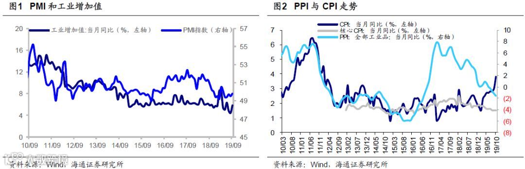基本面上,10月31日统计局公布的10月制造业PMI指数从9月的49.8%回落至49.3%,低于市场预期的49.8%,创下3月以来新低。11月9日公布的10月CPI同比上涨3.8%,高于预期的3.4%以及前值3%,核心CPI同比继续维持在1.5%,PPI同比下降1.6%,低于预期的-1.5%以及前值-1.2%。PPI向下超预期,核心CPI依旧在筑底,预示着需求疲弱,然而CPI向上超预期可能会干扰货币政策。