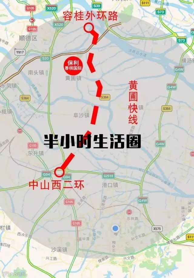 黄圃快线是中山市干线公路网规划“三环十二射”中的射三线,北连佛山市顺德区容桂外环路,南接中山市西二环,全长21.2公里。