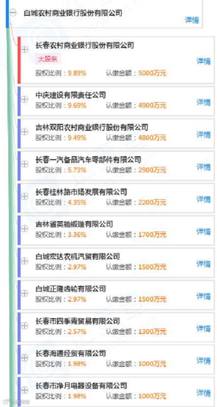 企查查显示,当前工商注册资本为55,101.6万元,法人代表王海军。该行组建之初,股本金总额3.5亿元,经过两次增资募股,现有股东147个,其中企业法人股东12个,股本额度2.77亿元,占总股本的55.44%;长春农商行占股本的10%,为最大股东。
