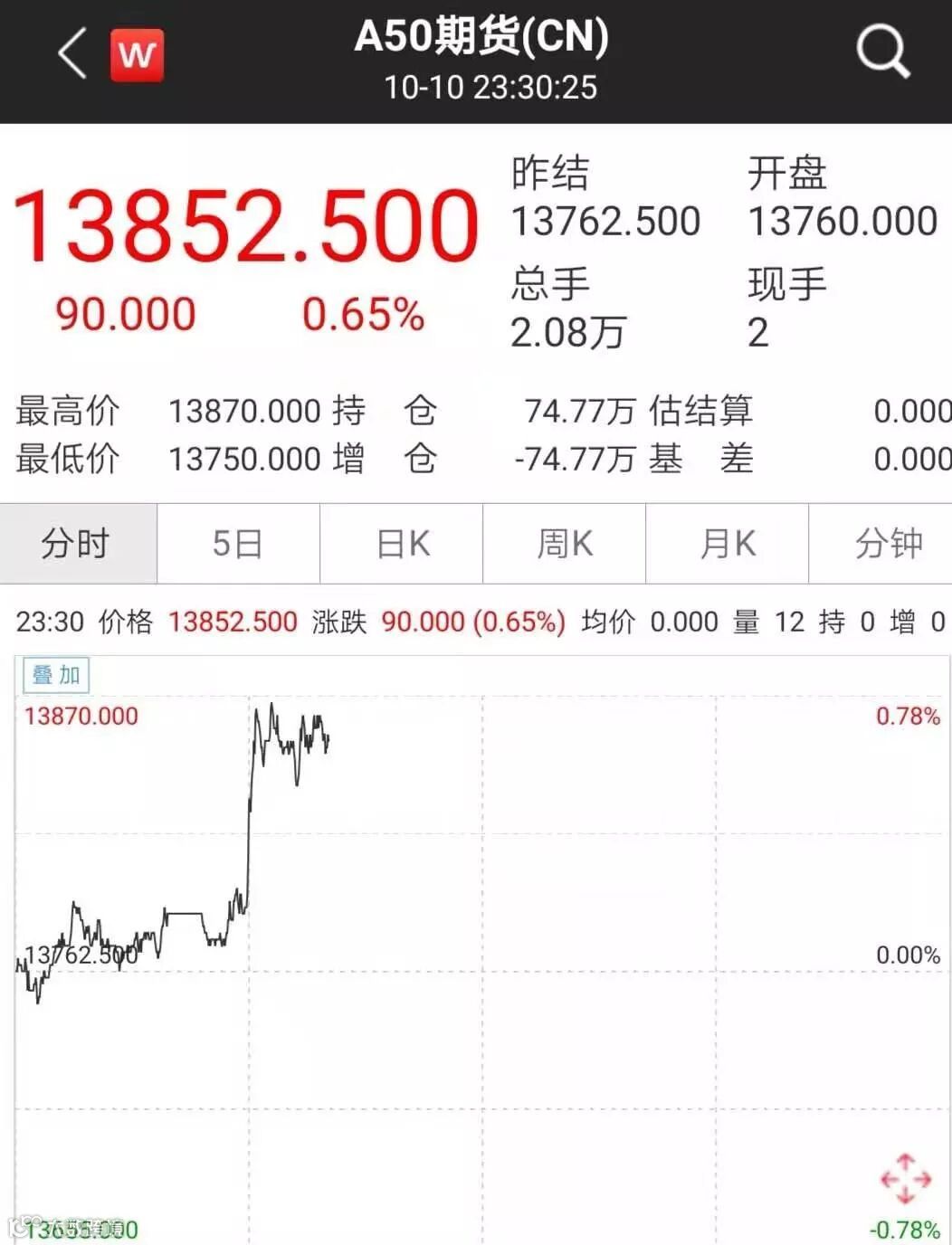 富时A50指数期货也出现直线拉升态势,截至发稿,富时A50涨近0.7%。